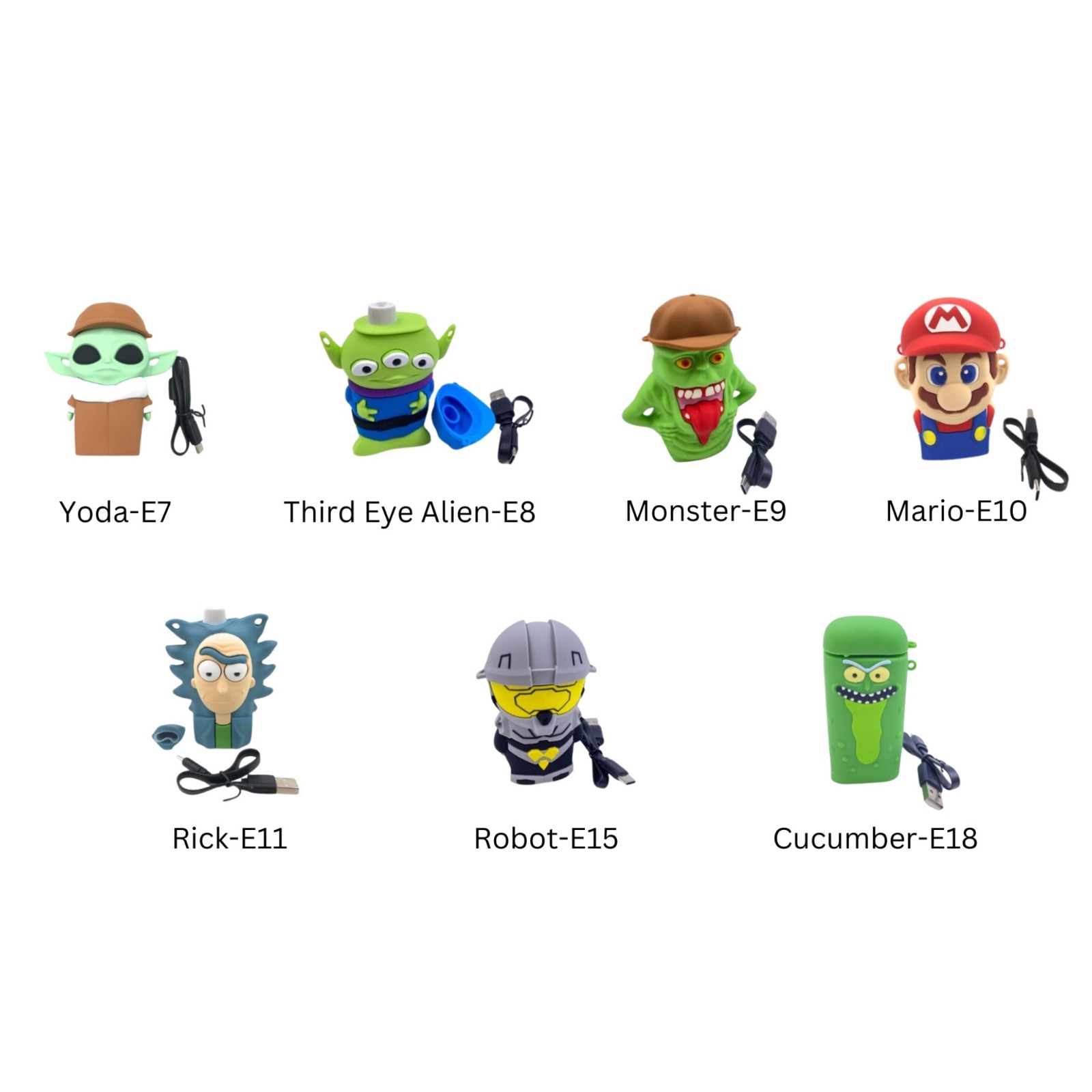 | Variation | Cucumber- E18, Mario- E10, Monster- E9, Rick- E11, Robot- E15, Third Eye Alien- E8, Yoda- E7 |