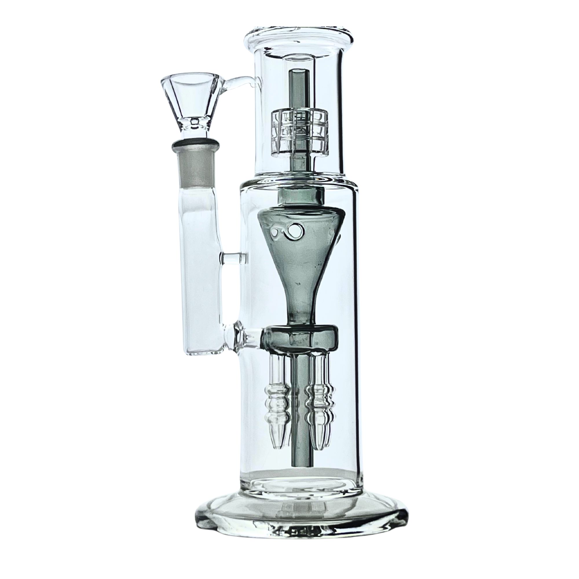 Cyclone Funnel Perc (Lower Chamber) – The conical funnel perc guides smoke downward, creating a powerful vortex that rapidly diffuses and cools each draw.