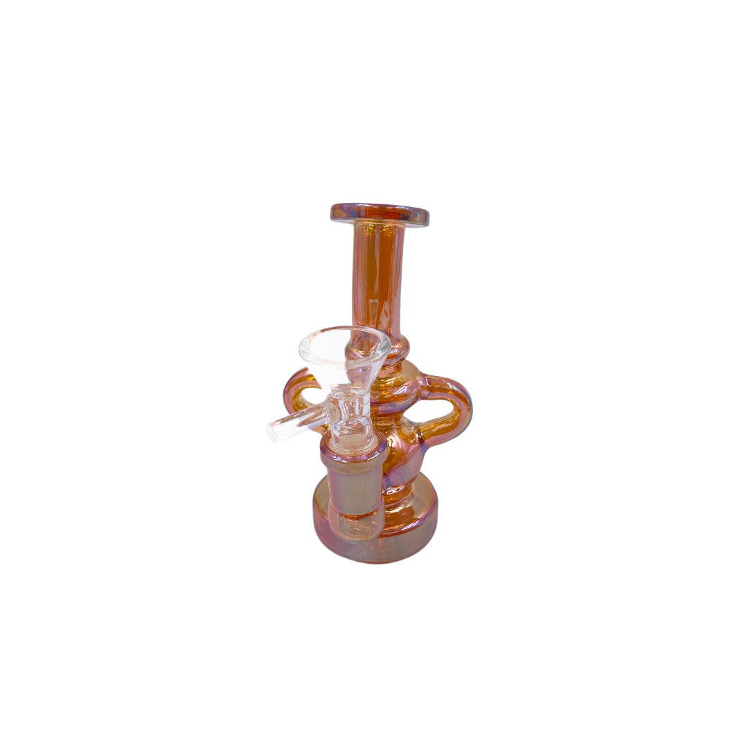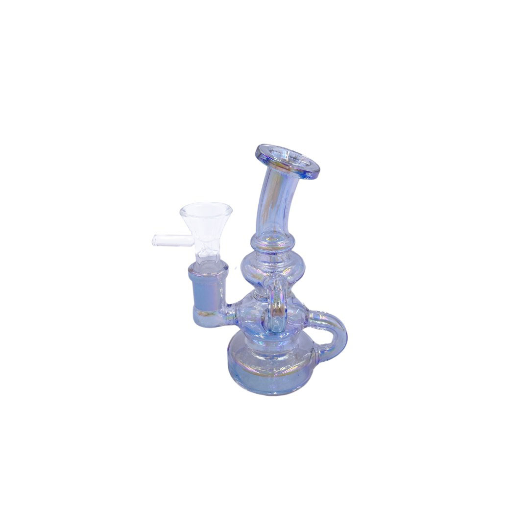 Introducing the 5″ Mini Cyclone Recycler Bong, the perfect fusion of portability and advanced filtration. This little powerhouse utilizes a recycler system to cool and purify your smoke, providing a remarkably enjoyable experience in a conveniently sized package.